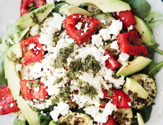 Kolhydrater totalt: cirka 12 gram Denna ljumma sallad passar perfekt som en lätt middag i sig, eller som tillbehör till annan mat. De ljumma grönsakerna gör salladen smakrik med en fin konsistens. Kombinationen av fetaost och varma grönsaker ger…