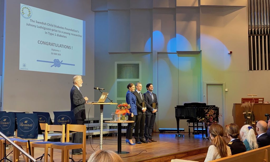 Professor – och likväl grundare av Barndiabetesfonden – Johnny Ludvigsson hälsar alla välkomna och introducerar H.K.H. Kronprinsessan Victoria upp på scenen. Kronprinsessan håller ett fint tal om hur Barndiabetesfonden var ett av hennes första engagemang redan som 16-åring, och hur hon genom dem har följt diabetesforskningen. Både optimistiskt och frustrerat. Kronprinsessan talade också om den viktiga roll som forskningen spelar, om hur barn med T1D måste få resurstillgång i skolan, och om hur viktigt det är att parallellt med allt det bekämpa de många fördomar och de osanningar som finns idag. Jag var nog inte ensam i den stora salen om att känna mig genuint berörd att Hennes Kungliga Höghet har valt att stötta vår kamp.