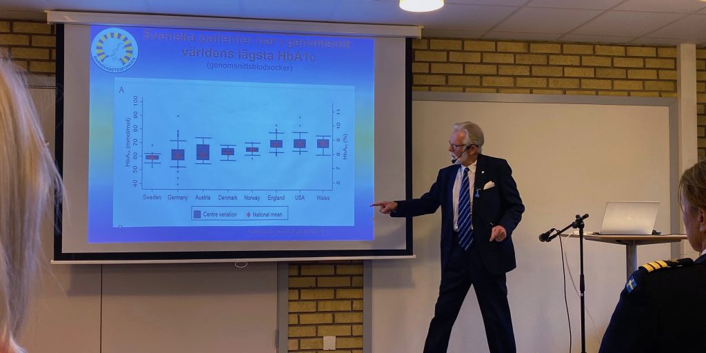 Därefter öppnar Johnny Ludvigsson sitt populärvetenskapliga föredrag med att säga ”Egentligen hade jag inte behövt prata mer nu, Elin har sagt det mesta – och hon är så fantastiskt bra”. Han drar sedan på sig läkarrocken och berättar om typ 1 ur ett vårdgivare-till-patient-perspektiv för oss. Han poängterar hur viktigt det är (och det är det verkligen, SÅ viktigt!) att sjukvården skiljer på PERSON och RESULTAT. Att en person blir inte en dålig person av ett dåligt HbA1c, och att ingen vinner på skuldbeläggning. Vården och patienten ska fungera som ett team! Han belyser också de psykologiska delarna av att leva med typ 1 diabetes, på ett mycket bra sätt. För mig värmer det lite extra, eftersom jag anser det vara en fråga som tar alltför lite plats idag och behöver få mer utrymme.