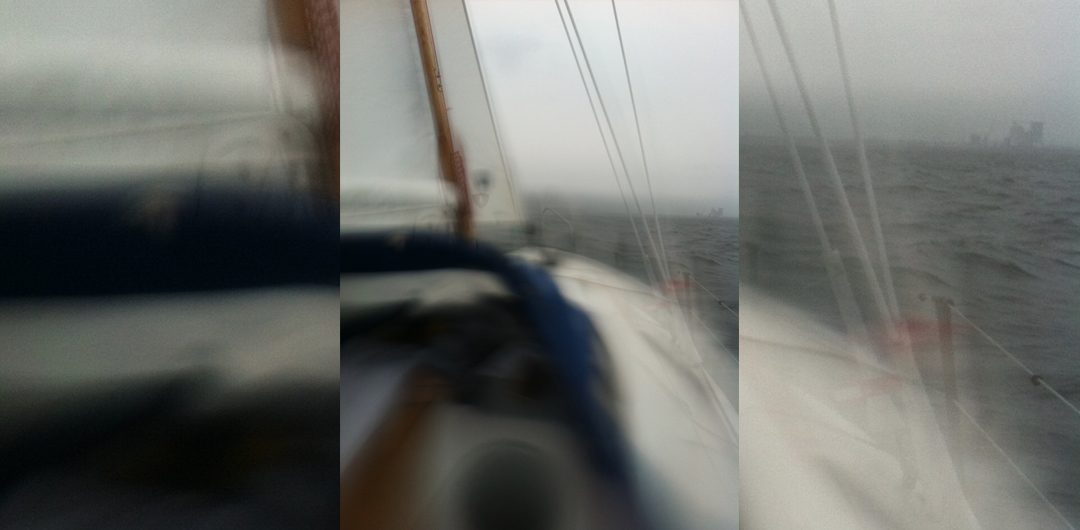 Utanför har vinden ökat och vridit. Båten rullar kraftigt och när jag sätter mig på knä ramlar jag omkull.