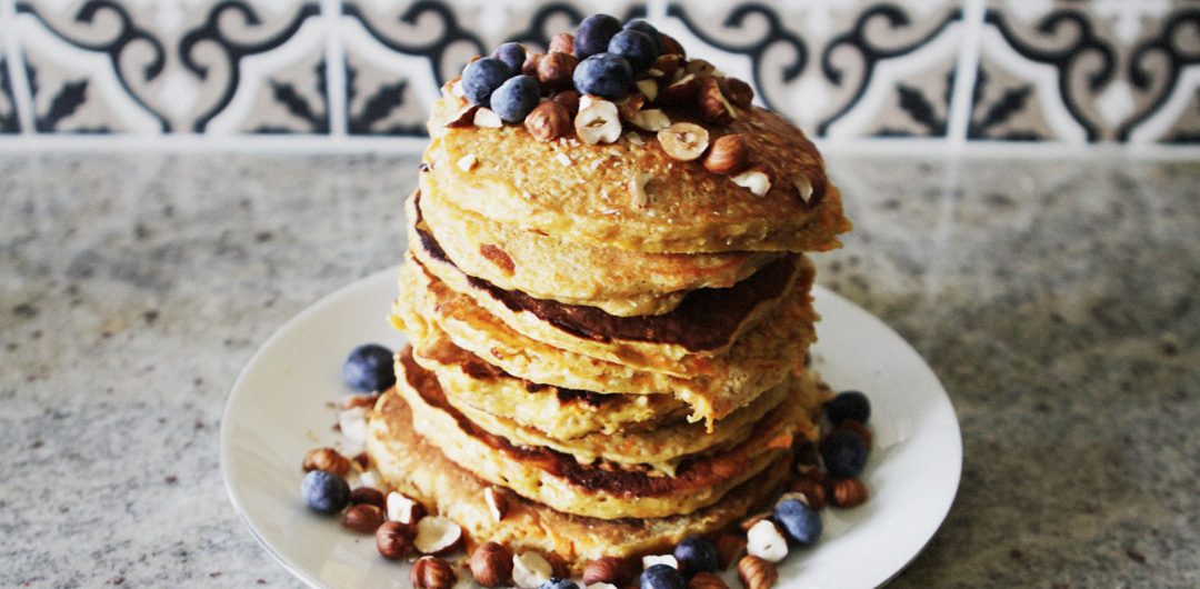 Dessa pannkakor passar perfekt när du vill laga en rejäl och läcker helgfrukost. Pannkakorna är ordentligt kryddade och smakar nästan som morotskaka. Dessutom är pannkakorna helt glutenfria om de lagas med hemgjort kokosmjöl och havremjöl. Tycker du att det är knepigt att få till ett bra resultat när du använder glutenfritt mjöl? Tillsätt en tesked fiberhusk och vips blir smeten tjock och fin och går lätt att steka!