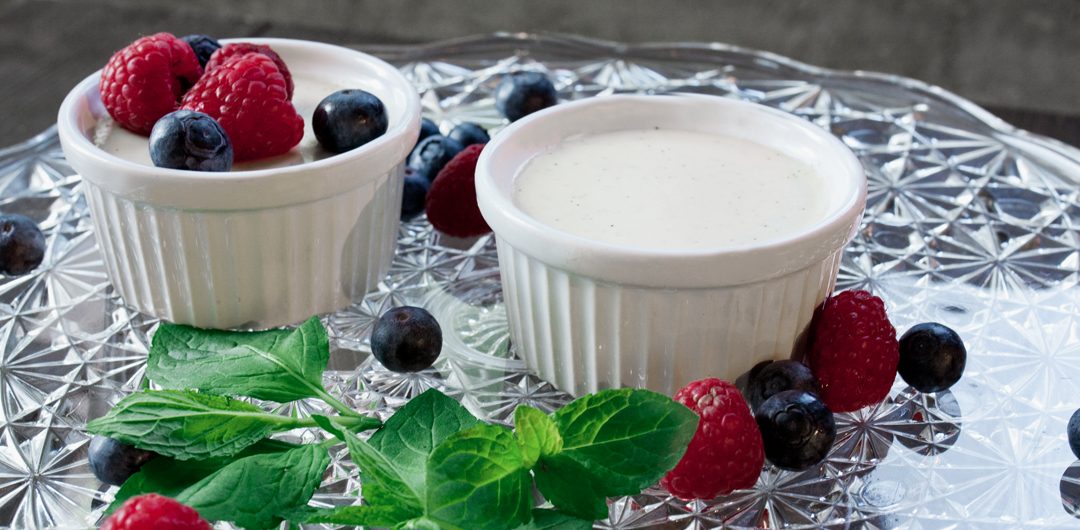 Pannacotta är en italiensk dessert med grädde, vanilj och socker. Det är enkelt att tillaga en variant som smakar lika gott, men med bättre näringsinnehåll och mindre socker. Yoghurten ger en fräsch smak och bidrar med goda och viktiga näringsämnen.