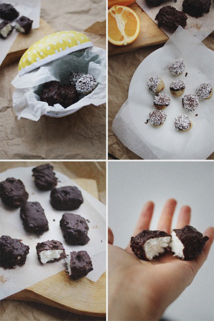 Marsipanägg med choklad- och kokosöverdrag ca 10 st. (fördubbla gärna receptet)