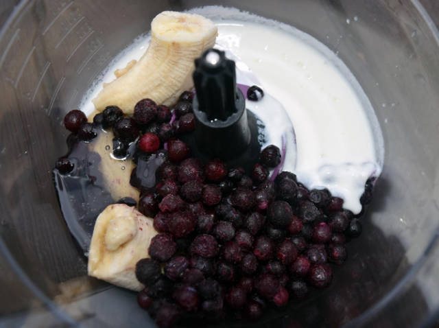 1. Lägg honung, bär, frukt och yoghurt i en mixer eller matberedare. Kör tills smeten är helt slät.