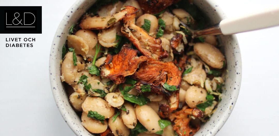I det här receptet har kantarellerna smörstekts och kryddats tillsammans med stora vita bönor, vilket utgör en fiberrik, smart och näringsrik liten rätt.